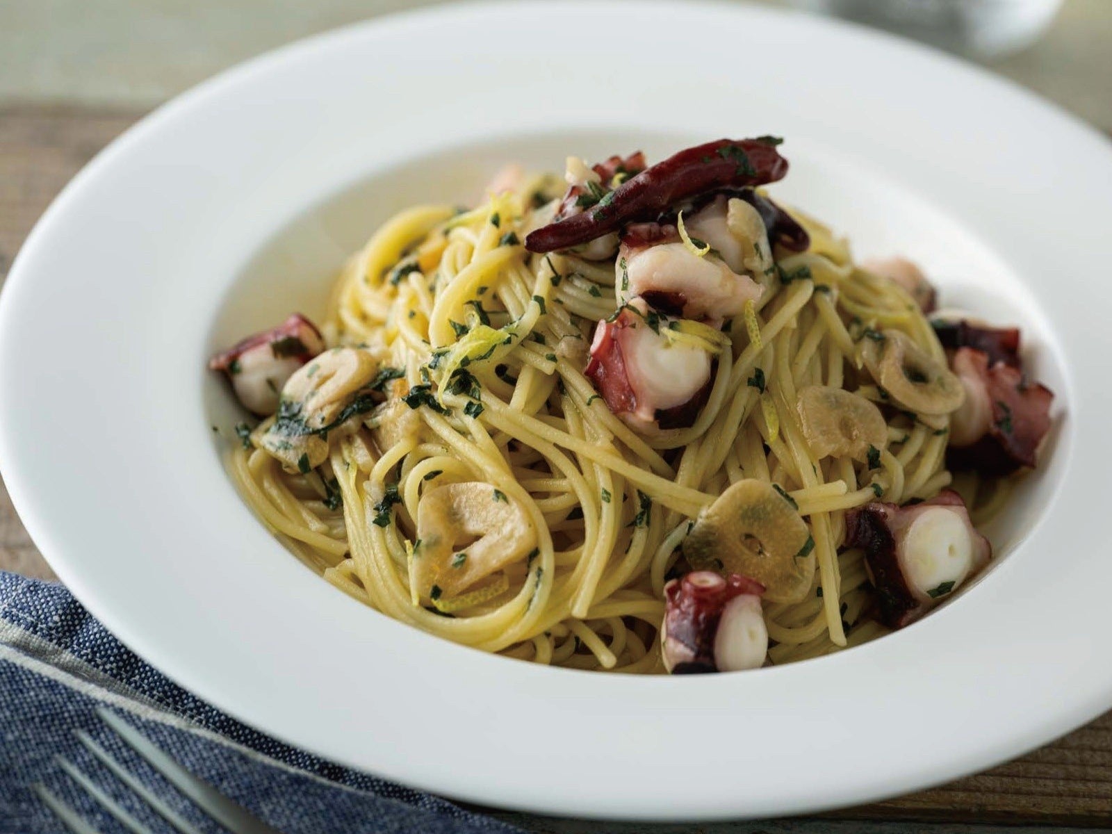 cream-based to unique variations, are clearly and carefully explained with photographs. Even on busy days or when you just don’t feel like doing it, this book will help you whip up delicious pasta in no time! We hope it brings surprise and smiles to your kitchen. Some book content introduction ■Part 1: The Ultimate Oil-Based Pasta The ultimate peperoncino that caused a huge buzz on social media! “Octopus and Green Shiso Peperoncino”