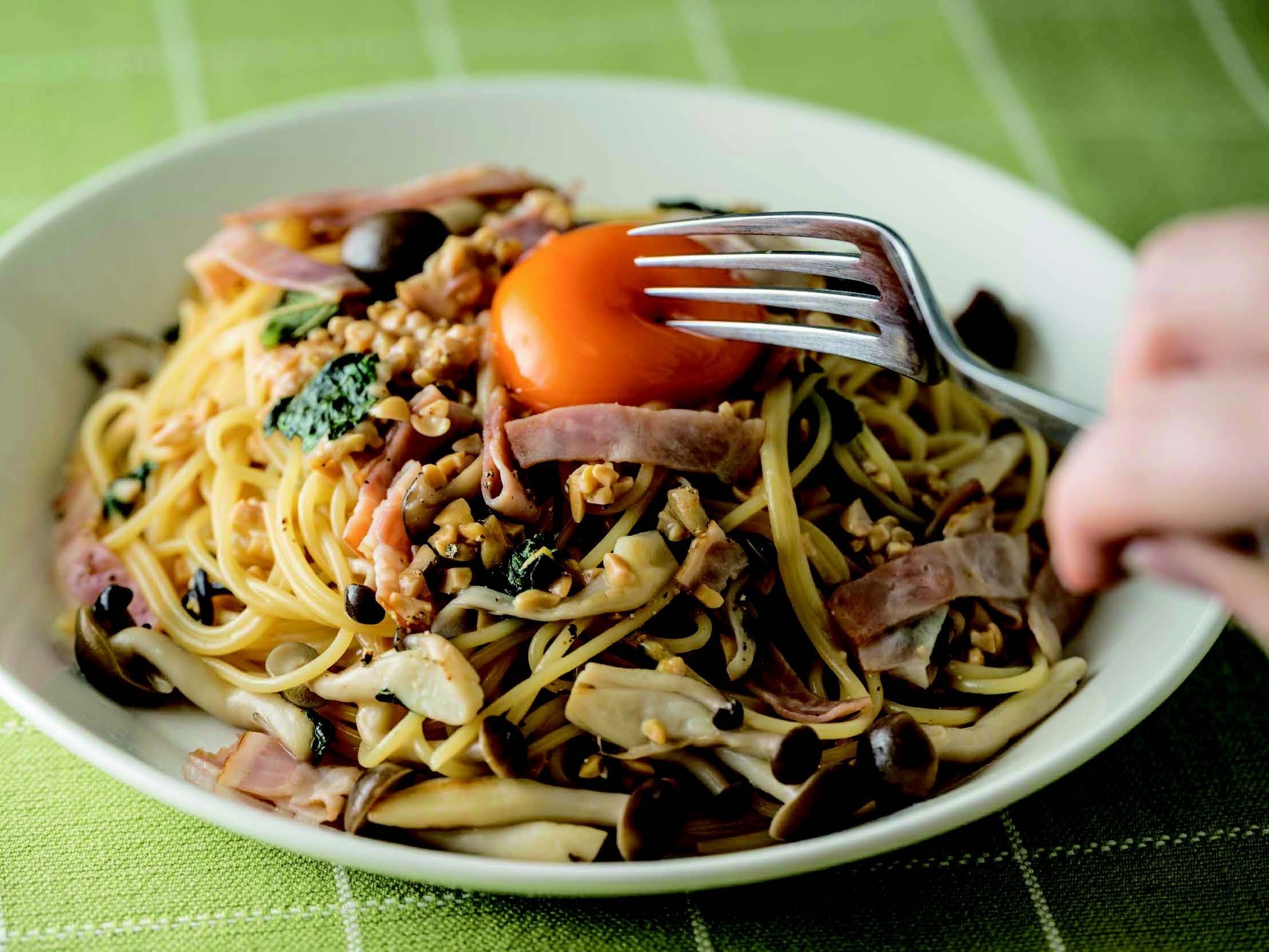 URL: https://prcdn.freetls.fastly.net/release_image/26633/1466/26633-1466-99bdb448b691db40b1c3953bbeeef0eb-1271×953.jpg ■Part 4: Freely Arrange Pasta Enjoy with the runny yolk! “Infinite Natto Pasta”