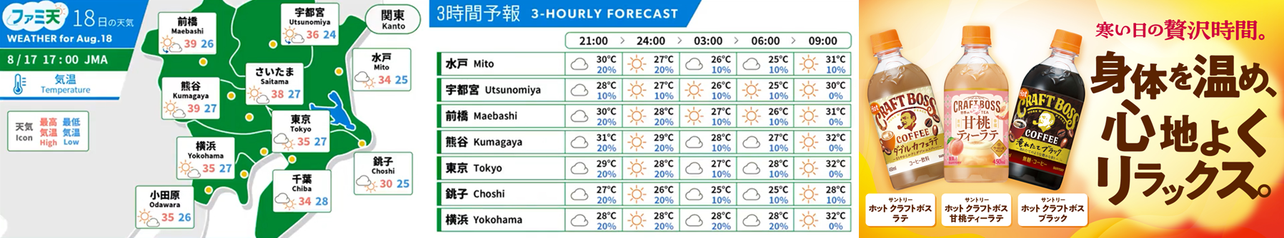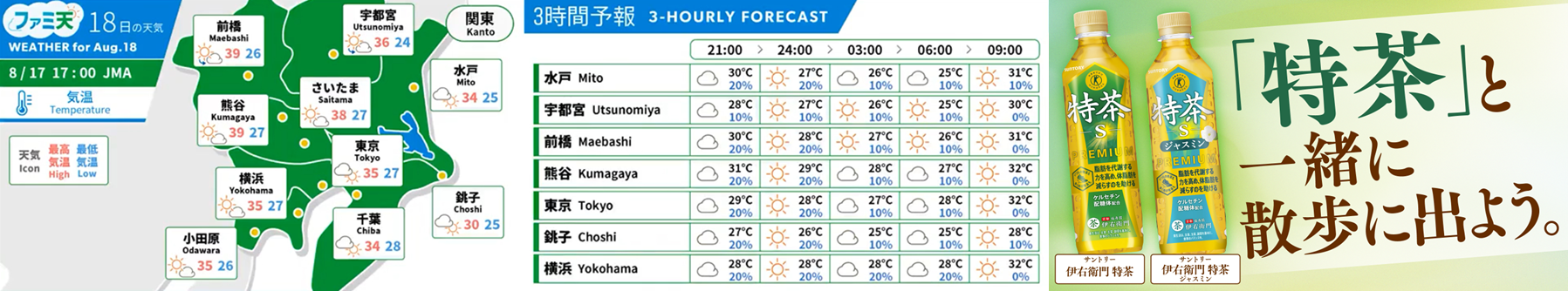 https://prcdn.freetls.fastly.net/release_image/97469/82/97469-82-2fbcdb13ce89d25ad5493bcaf1546df3-1797×334.png Note: The temperature index for this ad is based on the average temperature in the distribution area. Please note that it may differ from the actual temperature. ◆This verification period October 28, 2025 (Tuesday) – November 10, 2025 (Monday) *Broadcast content, broadcast period, and broadcast time may change without notice. *Broadcast may not be available in some areas. *Only available at stores with FamilyMartVison installed. ▼For information on the weather information program “Famiten,” click here▼