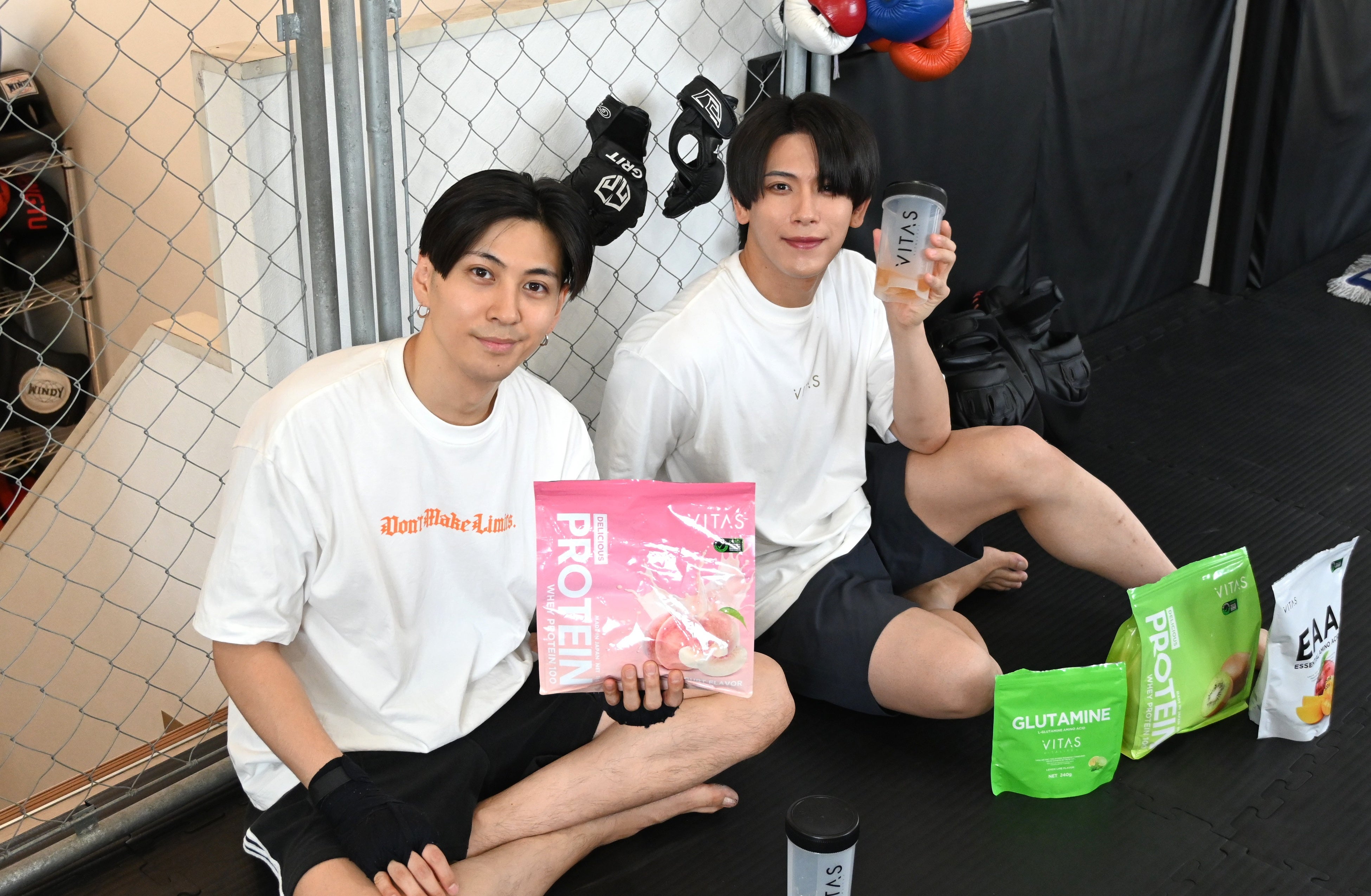 https://prcdn.freetls.fastly.net/release_image/86328/122/86328-122-37417d2994f47f2fb43f8b58b380a908-3900×2496.jpg Matsubara-san I’ve always had a hard time getting up in the morning and my skin tends to get rough, so I’ve been taking zinc and vitamins. Now that I’m a VITAS ambassador, I’ve been drinking “VITA POWER” every day, and I feel like I’m getting nutrients that I wasn’t getting before. I especially drink it before performances to give myself energy! What was your impression after drinking (using) VITAS products? Mr. Izawa People who work out drink protein on a daily basis, right? With VITAS, you don’t feel like you have to drink it, you feel like you want to. It goes down smoothly and doesn’t clump, and it feels like drinking juice. That’s something you don’t get with other proteins. Also, the shaker is great! I like that the bottom is rounded so liquid doesn’t collect. Matsubara-san Simply put, it tastes delicious! Some people like the sweetness of fruit but not chocolate, but there are so many varieties that I’m sure there’s a flavor that suits you. I also like that they’re not powdery. They’re also popular when I hand them out to co-stars.
