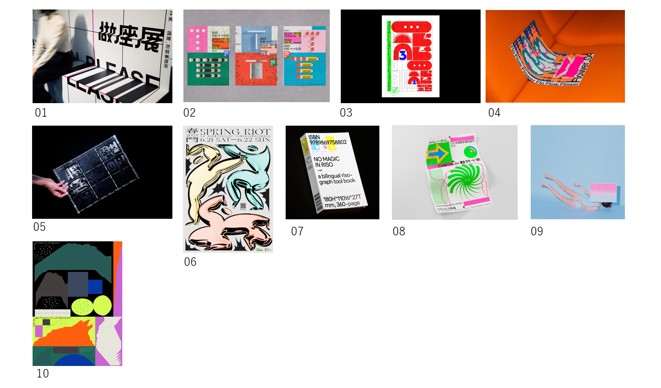 https://prcdn.freetls.fastly.net/release_image/69194/915/69194-915-dfe1b3607875971c0631ac197a847bca-1319×775.png 01 2023 Textbook Design Award ddd.pizza 03 “Recall Unfit Legislators” Echo Yang 04 “Flo Flow Flower Poster” HOUTH 05 “Pawnshop | Program issue 008” Elf-19 06 “Spring Riot” ONE.1O Society 07 “NO MAGIC IN RISO” O.OO(TM) 08 “Taiwan Design Exhibition 2020” Oval graphic 09 “The Nothingness of Amelie” Sydney Sie 10 “100 shapes project” Yang Qiao Ran ■Participating studio/designer ○adj. everything (Illustration of Things) / Tsai Tung-hung, Hsu Shu-jun ○ ddd.pizza / Chang Pu-hui ○ Echo Yang / Yang Wei-lun ○ Elf-19 / Hung Chang-lian ○ HOUTH / He Wanjun, Huang Ji-teng ○ O.OO(TM) / Lu Yi-hua, Liu Yu-hsien ○ ONE.1O Society / Desiree New ○ Oval graphic / Ye Zhongyi ○ Sydney Sie / Sydney Xie ○ Yang Qiao Ran ■Exhibition Curator, Graphic Design ○ Tetsuya Goto Designer, curator, and editor. Professor at the Department of Cultural Design, Faculty of Literature, Kindai University. Based in Osaka, he researches and documents contemporary graphic design in East Asia while building an international network through exhibitions and publications. ○ Javin Mo Javin Mo, a member of AGI (Alliance Graphique Internationale), is the founder of the design studio Milkxhake. He is a Hong Kong-based graphic designer and curator who has organized numerous design exhibitions and events across Asia. He currently resides in Taipei. *You can view the profiles of our designers and curators here.