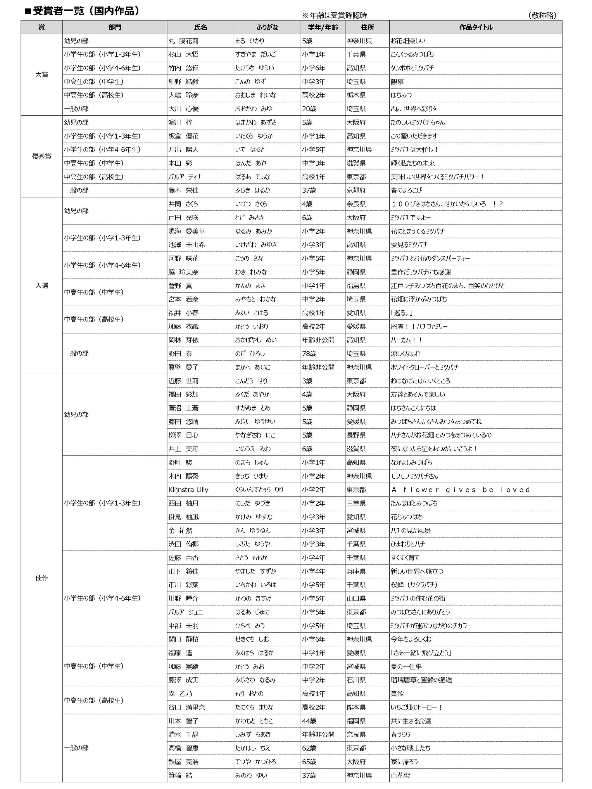 https://prcdn.freetls.fastly.net/release_image/30748/293/30748-293-d1ecd1d8f9e56db69b55e560b95e394c-3900×2600.jpg ▲In fiscal year 2025, we will plant 41,931 trees, including 21,973 trees submitted to the 12th “One Bee Drawing Competition” held the previous year. (As of October 2025) List of grand prize winning works (6 domestic categories)