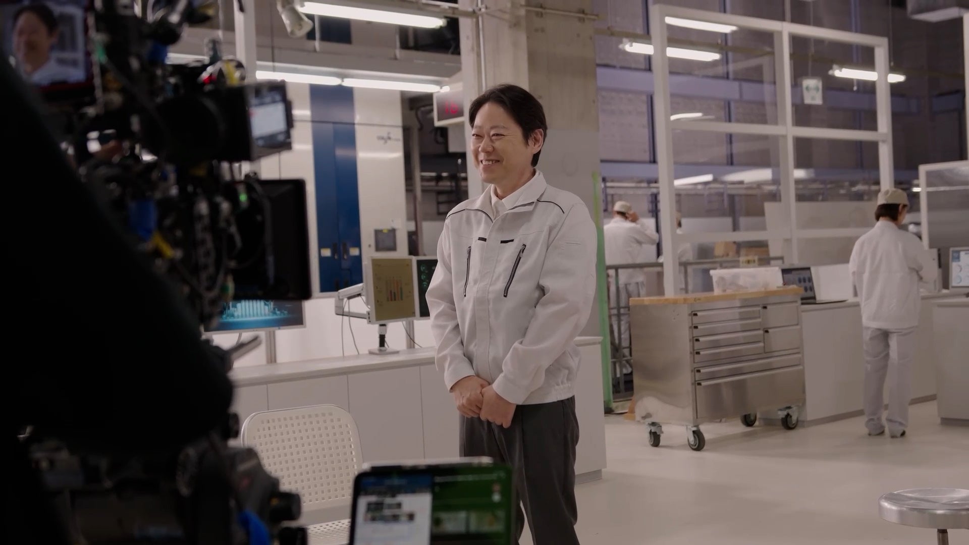 https://prcdn.freetls.fastly.net/release_image/108492/21/108492-21-747ff7ce85b693e328ed600fabbce6de-1920×1080.jpg Matsu suddenly changes the topic with a serious look on his face, saying, “Well.” Abe is surprised and responds, “Well!?” Matsu spoke as he surveyed the factory workers. “Business is something people do, isn’t it? They spend precious time in their lives, and sometimes they sacrifice something. That’s why we want to make people in every industry and region of this country happier through DX.” Then, a little embarrassed, he asked Abe, “Is it wrong to dream like that?” On the way to the factory gate, Abe showed Matsu a photo of himself with his brother, who worked at NTT, on his smartphone, saying, “My brother said the same thing.” Matsu muttered, “Hehe, we’re the same,” and Abe looked deeply moved. Matsu then said, “Face.” Surprised, Abe retorted, “Face?” When Matsu asks, “Are you twins?”, Abe replies with a laugh, “No, we’re two years apart. We have long faces…” Finally, the video closes with the phrase “DX that cares for people” followed by the “NTT Docomo Business” logo.