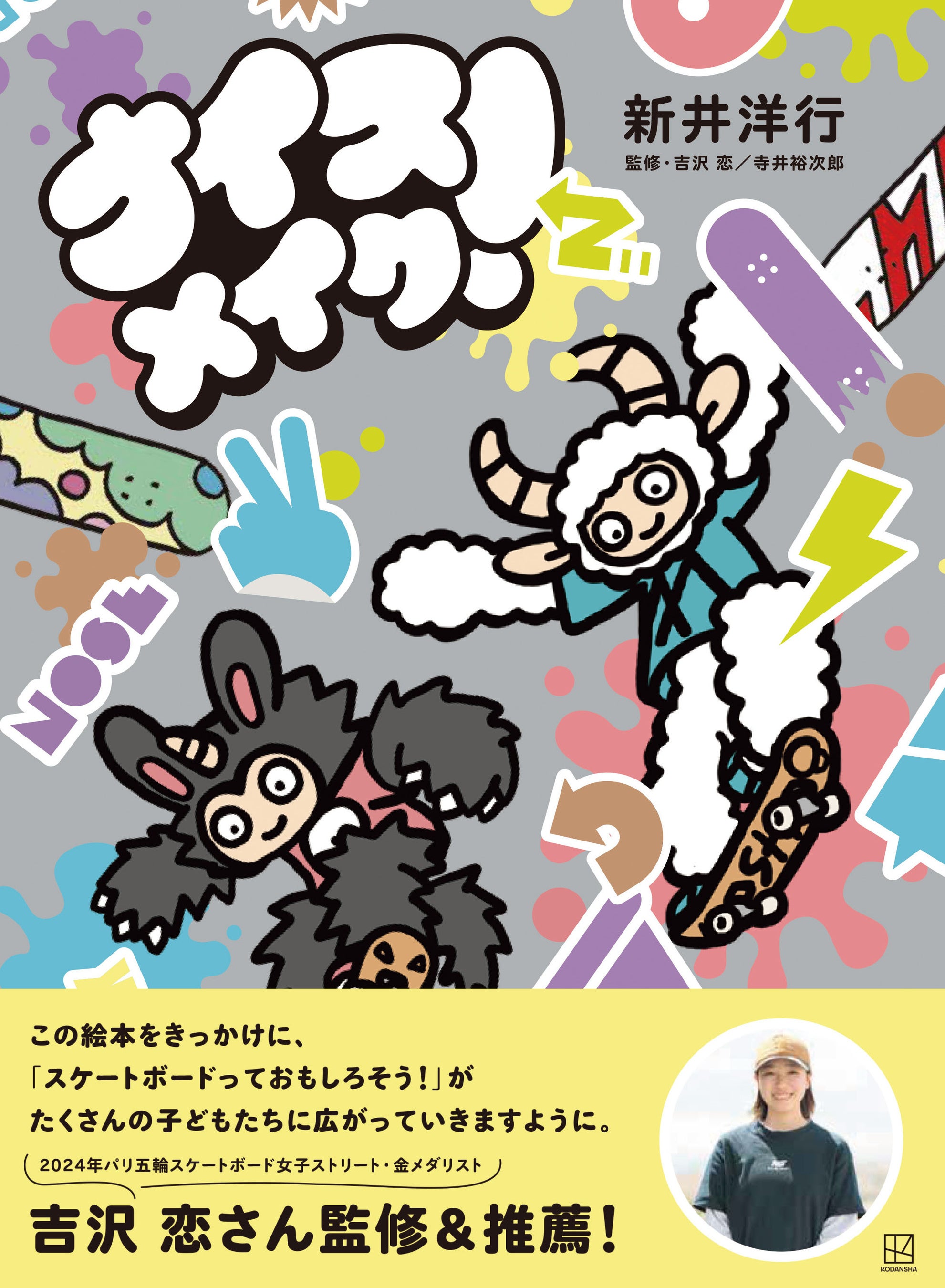 Kodansha Co., Ltd. Press release: October 29, 2025 To Members of the Press Supervised and recommended by Ren Yoshizawa, gold medalist in the women’s street skateboarding event at the 2024 Paris Olympics! “Nice Make!” is the first skateboarding picture book that both children and adults can enjoy. ” on sale October 29th! A picture book themed around skateboarding, a sport whose popularity continues to grow every year, has finally been released. This one-of-a-kind picture book will allow you to fully experience the charm of skateboarding! Kodansha Ltd. will publish the skateboard-themed picture book “Nice Makeup!” (written by Hiroyuki Arai, supervised by Ren Yoshizawa and Yujiro Terai) on October 29, 2025. This is the first introductory picture book on skateboarding published in Japan, and is enjoyable for both children and adults. While enjoying the story, children will naturally learn about skateboard parts, tricks, the fun of practicing with friends, and tips for improving their skills. The story also instills in children the importance of “never giving up” and “perseverance,” which are also relevant to skateboarding. Supervised by Ren Yoshizawa, gold medal winner in the women’s street