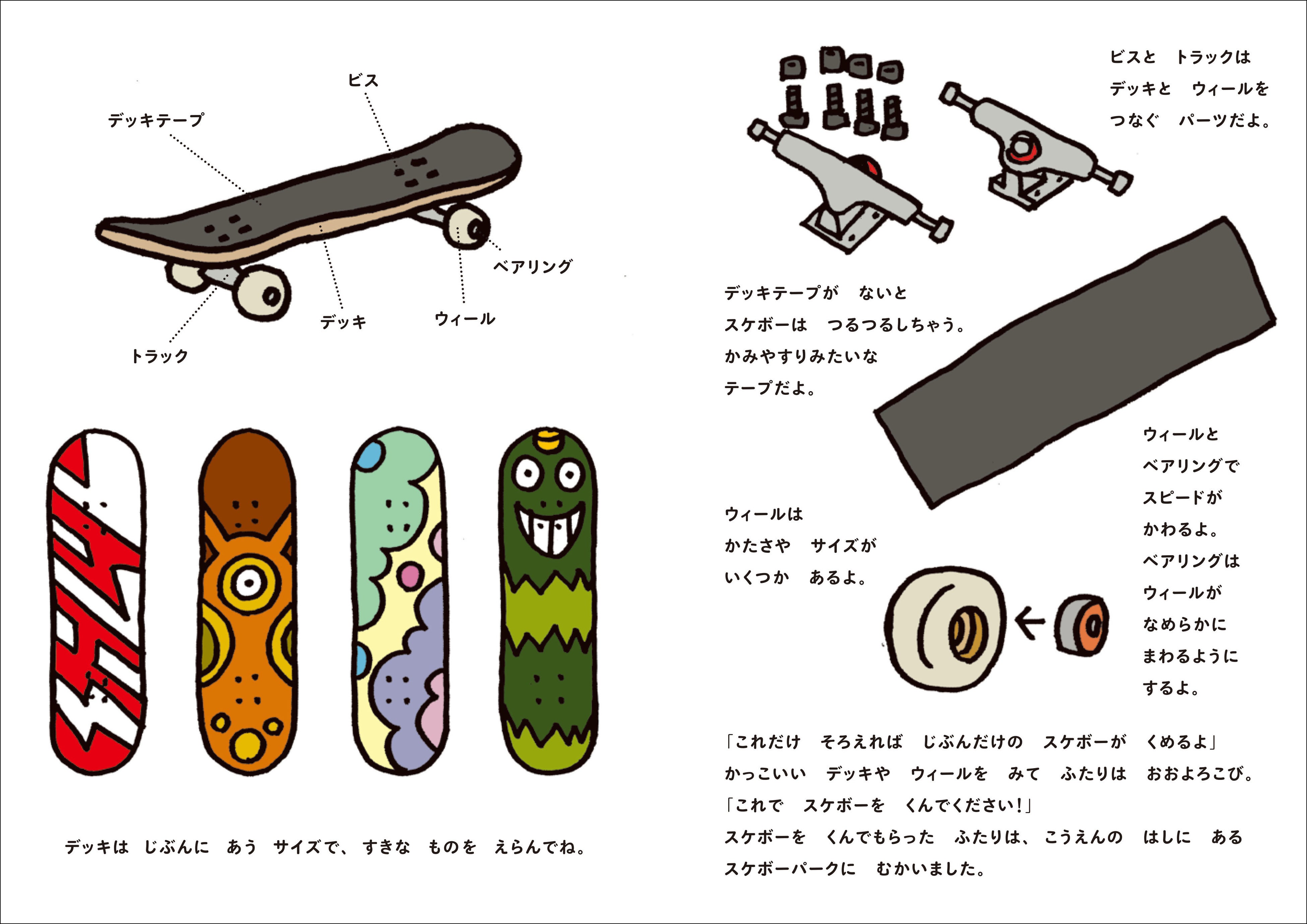 https://prcdn.freetls.fastly.net/release_image/1719/7801/1719-7801-a736160e11d2cba430d12001bbde53e6-3900×2721.jpg ■Explanation of skateboard parts! The game also introduces skateboard parts such as decks and wheels. Even if you’re not an expert on skateboards, you can still enjoy it.