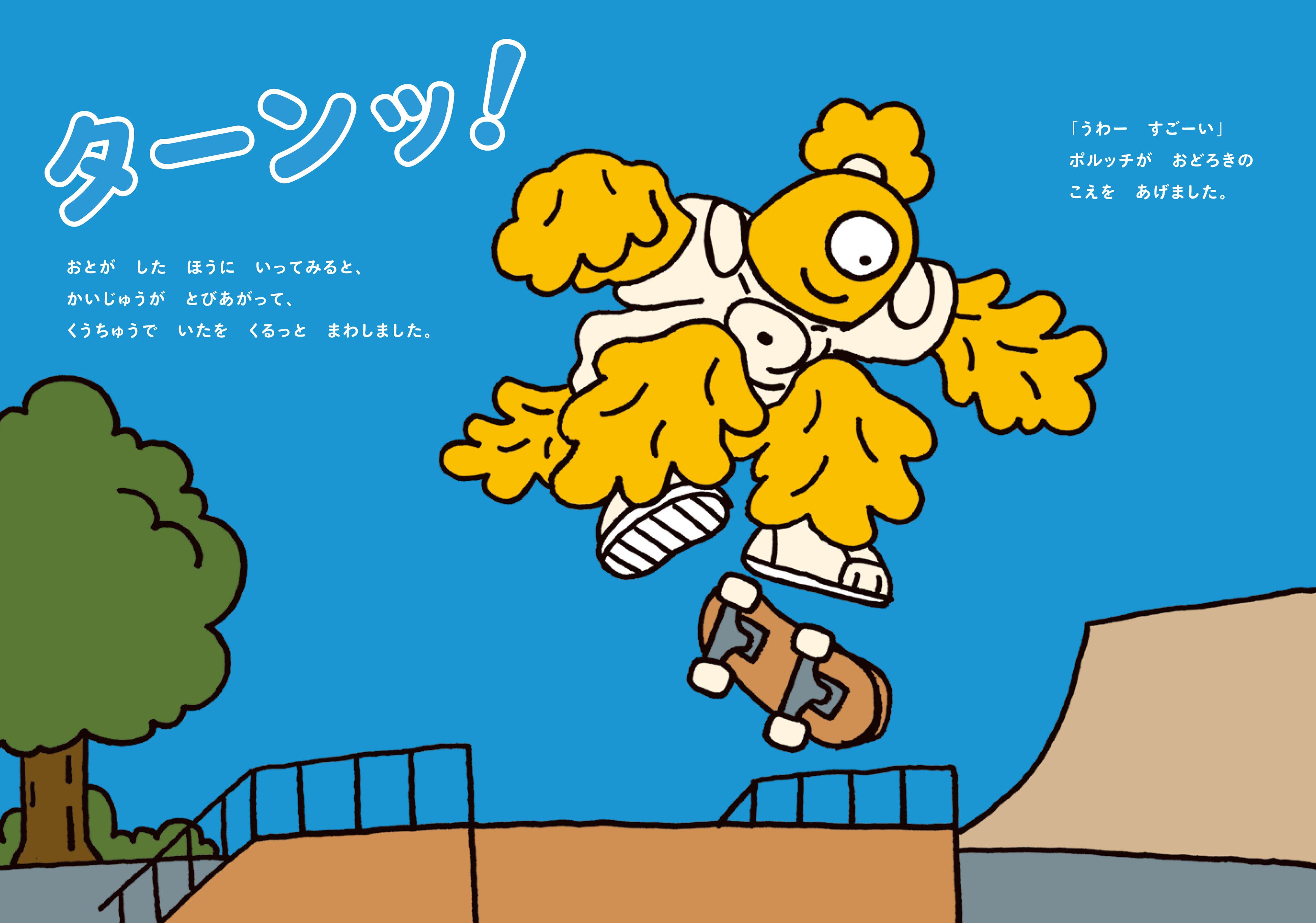 https://prcdn.freetls.fastly.net/release_image/1719/7801/1719-7801-26a4da3eba65738f81e6784564213648-1981×2700.jpg ■Main contents One day, Porucci and Mash meet Eringir, a skateboarding monster. Eringir invites them to take up skateboarding. While shopping at a skateboard shop and practicing at a skateboard park, Porucci and Mash gradually begin to realize the appeal of skateboarding. Will they be able to land the skateboarding trick, the “Ollie”? ■Author Hiroyuki Arai Profile Born in Tokyo. Picture book author and designer. He has produced over 200 picture books, including “Goto Goto Gotton,” “Happy Halloween!” and “Mr. Tree” (Kodansha), “The Refrigerator” (Kaiseisha), “Iroiro Baa” (Ehon no Mori), “Shiro to Kuro” (White and Black) (Iwasaki Shoten), “Who’s Coming?” (Kumon Publishing), and “How Popori the Wild One Overcame the Anger” (Pie International). He also designs characters for television programs and toys. 2026 will mark the 20th anniversary of his debut as a picture book author.