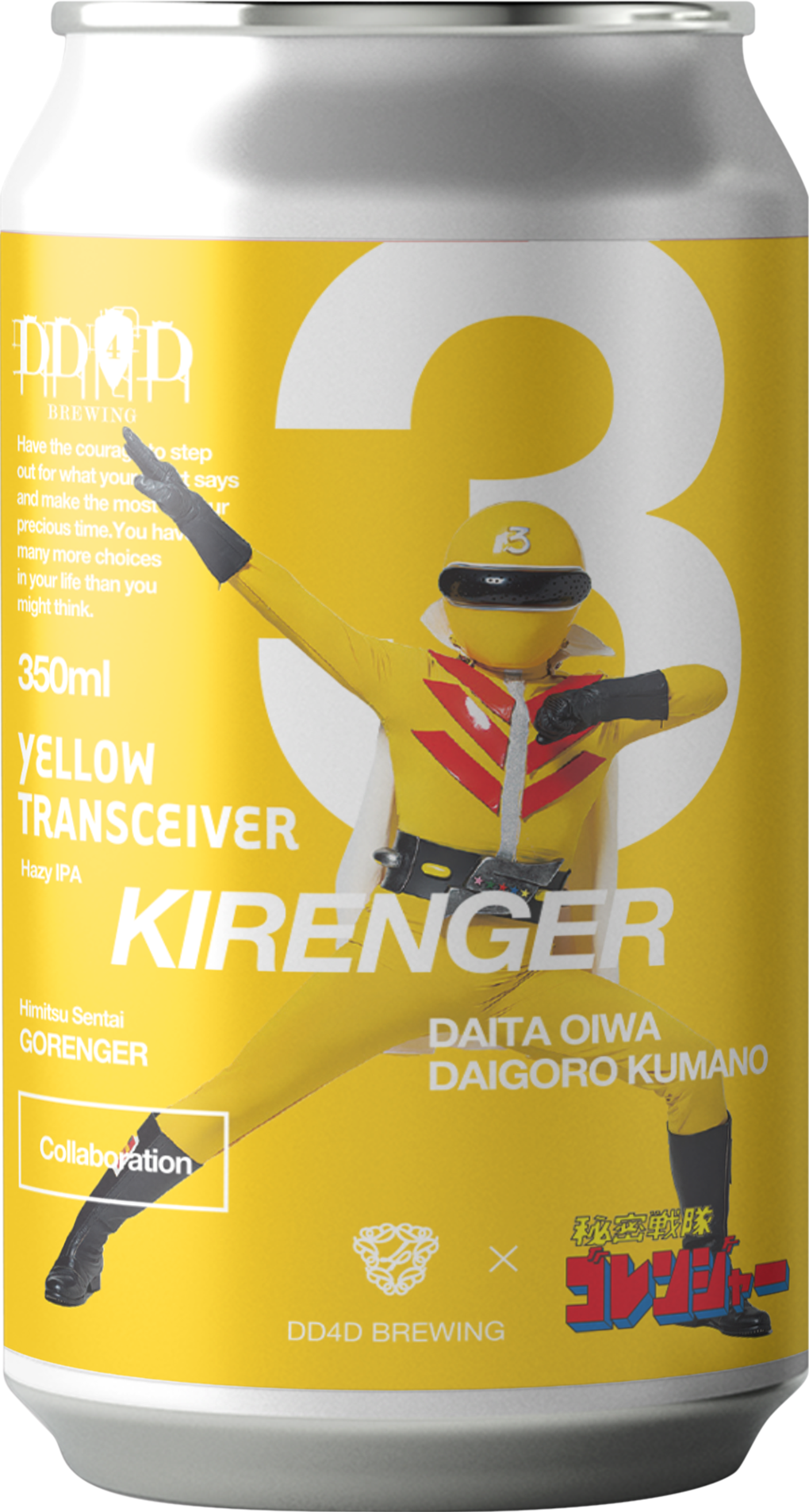 https://prcdn.freetls.fastly.net/release_image/52324/21/52324-21-14430387de3930f0f8480c158c982561-1020×1906.png Yellow Transceiver – Hazy IPA Product name: “Yellow Transceiver” Item: Beer Beer Style: Hazy IPA Alcohol content: 6.5% IBU: 18 Ingredients: Malt (Germany, UK), oats, sugar, hops/carbon dioxide Hop: Nelson Sauvin, Simcoe, Sabro Malt:PILSEN, Wheat, Dextrin Malt, Flaked Oats, Golden Naked Oats Yellow Transceiver (Kiranger collaboration) A strong man who loves curry! Kirenger! This hazy IPA, inspired by Kirenger, features aromas of citrus, coconut, berries, and white grapes from three types of hops. The biscuit-like grain flavor and tropical aftertaste from the yeast fill your mouth! Drink this and gain the power of Kirenger!