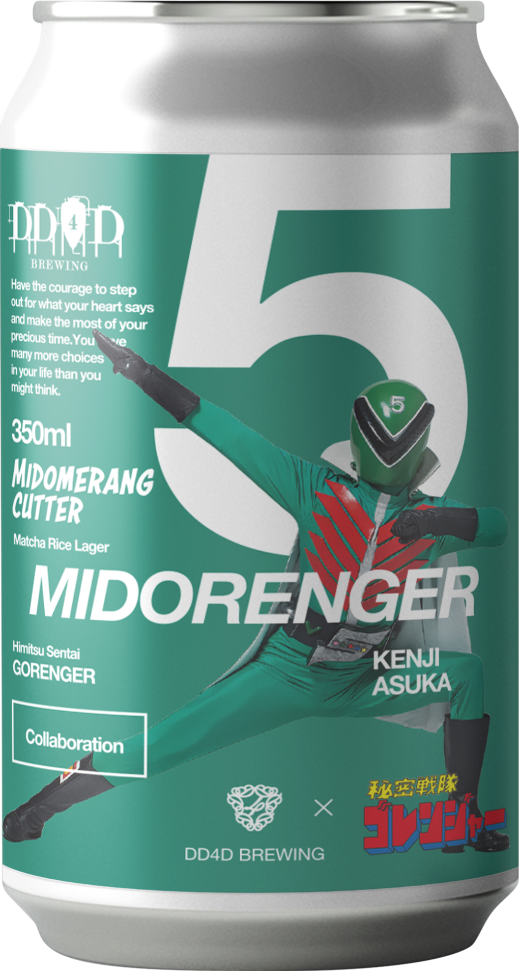 https://prcdn.freetls.fastly.net/release_image/52324/21/52324-21-db02d8153f9da47925956afe006d81f0-1020×1906.png Midomerangcutter – Matcha Rice Lager Product Name: “Midomerangcutter” Product: Happoshu (low-malt beer) Beer Style: Matcha Rice Lager Alcohol content: 5% IBU: 20 Ingredients: Malt (made in Germany), rice flour, matcha, hops/carbon dioxide Hop:Columbus Malt: PILSEN, Flaked Rice Midomerangcutter (Midoranger collaboration) A kind-hearted young man who loves animals! Midoranger! Inspired by Midoranger, this matcha rice lager is based on a refreshing lager and is flavored with Uji matcha and rice! A subtle sweetness from rice and matcha peeks out from the barley flavor! Drink this and be as kind and strong as Midoranger!