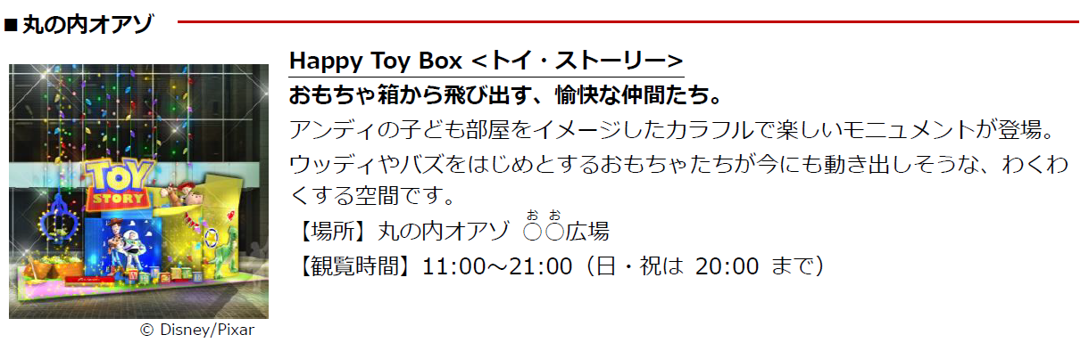 URL: https://prcdn.freetls.fastly.net/release_image/43503/369/43503-369-1be1b2a77cbd289c8beed2a1260ad9dc-1033×641.png *Image “MARUNOUCHI BRIGHT HOLIDAY 2025” Exclusive Content Available in the Marunouchi Area ■ MARUNOUCHI BRIGHT HOLIDAY 2025 Disney JOYFUL MOMENTS POP UP SHOP Limited-time pop-up stores will be opening in Maru Cube on the first floor of Maru Building and in the corridor on the third floor of Maru Building! We have a wide selection of items with limited edition MARUNOUCHI BRIGHT HOLIDAY 2025 designs, as well as other goods perfect for the holiday season. Dates: Friday, November 14, 2025 – Sunday, January 4, 2026 Location: 1. Maru Cube, 1st floor, Maru Building 2. Maru Building, 3rd floor corridor 1. Maru Cube Special Venue, 1st Floor, Maru Building A wide variety of popular and latest Disney character merchandise is available. Also recommended for gift selection!