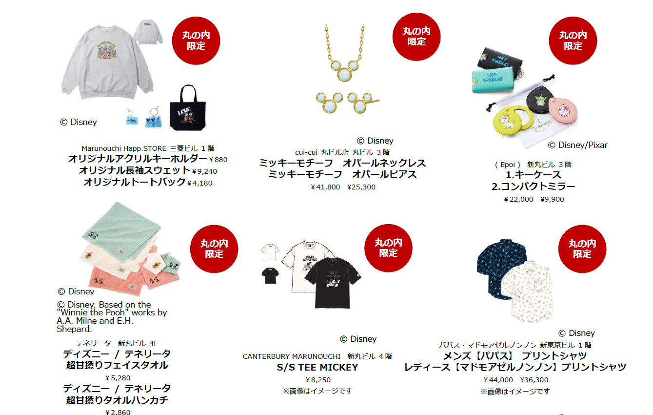 https://prcdn.freetls.fastly.net/release_image/43503/369/43503-369-98af0e643e70d60be924b3da89dc8d3f-1236×244.png 1. Maru Building 3rd Floor Corridor Special Venue – Product Display Examples Marunouchi Bright Holiday 2025 limited edition Disney merchandise is now available! We have a selection of exclusive items, including key visuals, Christmas motifs, and humorous working Mickey Mouse. Why not take home some everyday towels, mugs, stickers, and other items as a memento of the event?