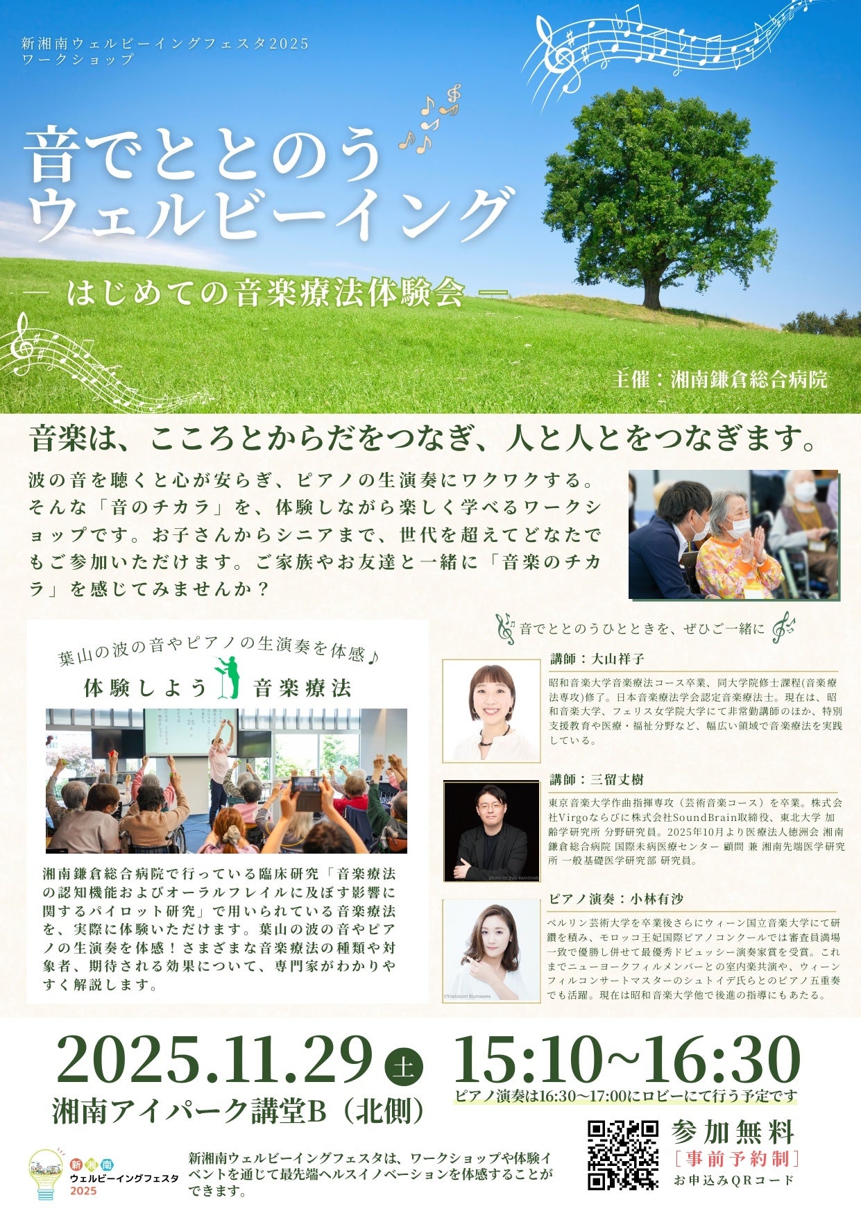 https://www.tokushukai.or.jp/research/center/kamakura/ ] [Shonan Health Innovation Park: https://www.shonan-ipark.com/ ] ■Also appearing at the public event “Shin Shonan Well-Being Festa 2025” to be held in November Mitsutome will be speaking at a workshop at the Shin Shonan Well-Being Festa 2025, a community event to be held at Shonan Health Innovation Park on Sunday, November 29, 2025. In addition, a piano solo piece, scheduled for release that month by DICT Records, a music label developed by DICT, will be performed by pianist Arisa Kobayashi, who is affiliated with DICT Agency. At the event, we plan to conduct psychological testing for those who wish to