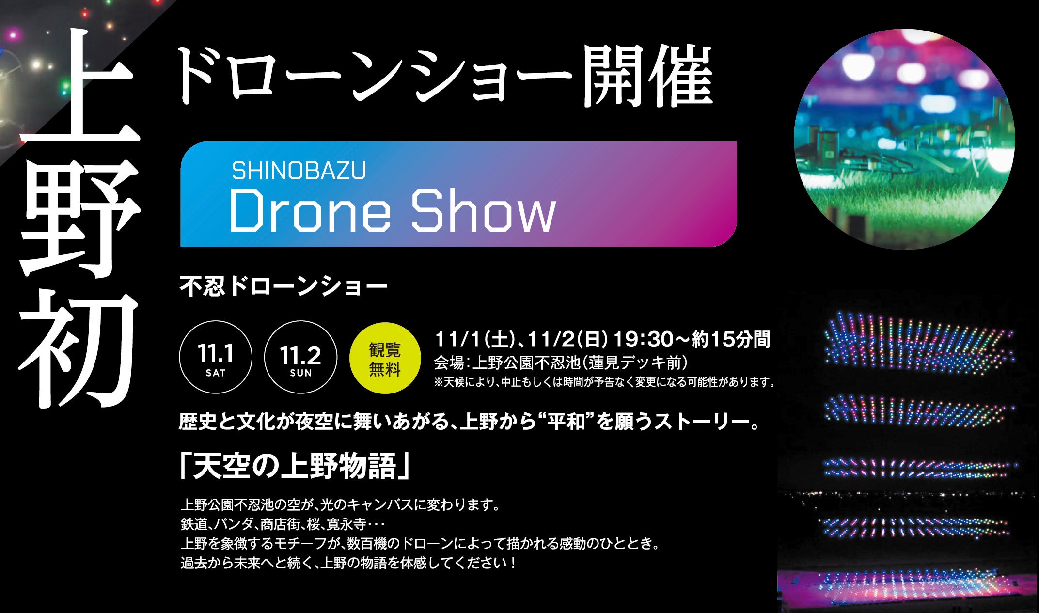 Red Cliff will hold the Shinobazu drone show “Ueno Tales in the Sky” on November 1st and 2nd during the “Peace of Light” event.