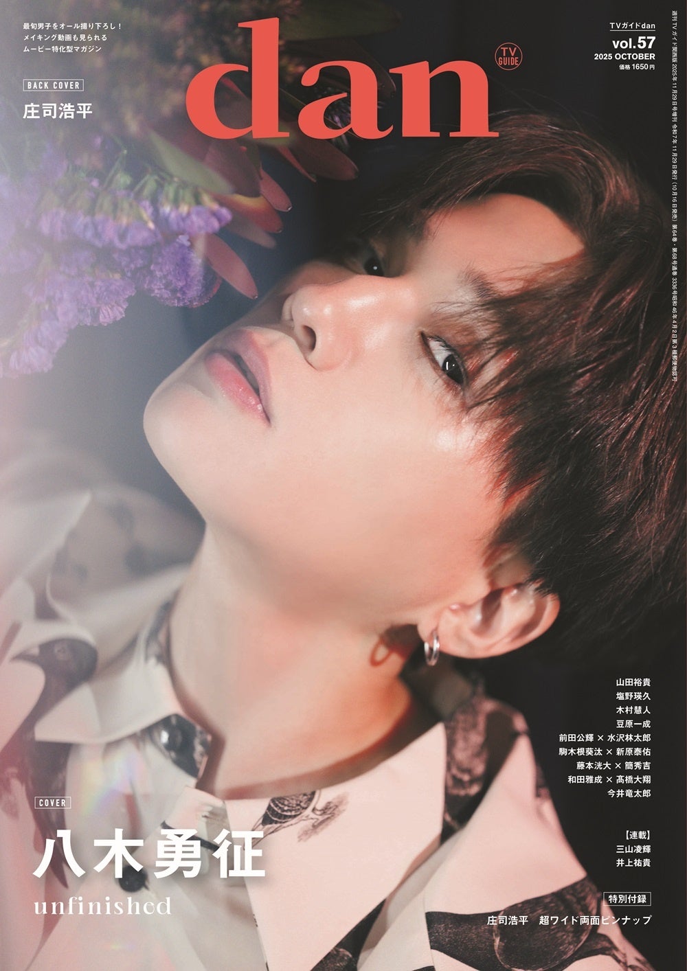 (Kantele/Fuji TV), Kimura Keito, who plays a member of a national idol group in the drama “You Are Special” (MBS/TBS and others), and Mamehara Kazunari, who stars in the currently screening film “Mount Fuji, Coffee and the Formula for Happiness.” In addition, Maeda Kouki and Mizusawa Rintaro play buddy roles in Wednesday Platinum Night “Oishii Divorce Notification” (Chukyo TV/Nippon TV), and Wednesday Drama 25 “25-ji, Akasaka de This issue features exclusive, newly shot gravure photos of some of the hottest guys right now, including Komakine Akita x Niihara Taisuke, who are playing lovers again in “Season 2,” Fujimoto Koudai x Kan Hideyoshi, who are co-starring in the drama “I ended up in a group that didn’t get along on my school trip” (ABC TV and others), and Wada Masanari x Takahashi Taito, who are taking on the challenge of “Yakuza BL” in the drama “A Journey to Kill You” (FOD). In addition, the magazine will feature popular serials such as Miyama Ryouki’s “Bliss (Casual Clothes) Collection” and Inoue Yuki’s “XX Boys Encyclopedia.” “dan the next,” which focuses on promising young actors, will also feature Imai Ryutaro, who stars in “Kamen Rider Zetts” (TV Asahi). We hope you enjoy “TV Guide dan Vol. 57,” which brings together the hottest actors and boy groups. Lineup Yuusei Yagi (Drama “My Favorite Idol Became My Boss: Full Throttle”) Kohei Shoji Yuki Yamada (The serialized “Yuki Yamada’s Fiend with Hundred Faces” is now available in one volume! Yuki Yamada releases “Kaijin” (Phantom of the Opera) Akihisa Shiono (Drama “Final Rondo – To You, Who I’ll Never See Again”) Kimura Keito (Drama “You Are Special”) Kazunari Mamehara (Film “Mount Fuji, Coffee, and the Formula for Happiness”) Maeda Kouki x Mizusawa Rintaro (Drama “Oishii Divorce Notification”) Komakine Akita x Niihara Taisuke (Drama “25th Hour, Akasaka de Season 2”) Fujimoto Koudai x Kan Hideyoshi (Drama “I Joined a Group of Unfriendly Friends on a School Trip”) Masanari Wada x Taito Takahashi (Drama “The Journey to Kill You”) Ryoki Miyama Inoue Yuki Ryuutaro Imai (“Kamen Rider Zetts”) [Luxurious bound-in supplement] Kohei Shoji Ultra-wide double-sided pinup Limited cover edition Some stores will be selling the “Weekly TV Guide Kansai Edition November 29, 2025 Special Edition TV Guide dan vol. 57 Limited Cover Edition,” which has different cover and back cover designs from the regular edition!