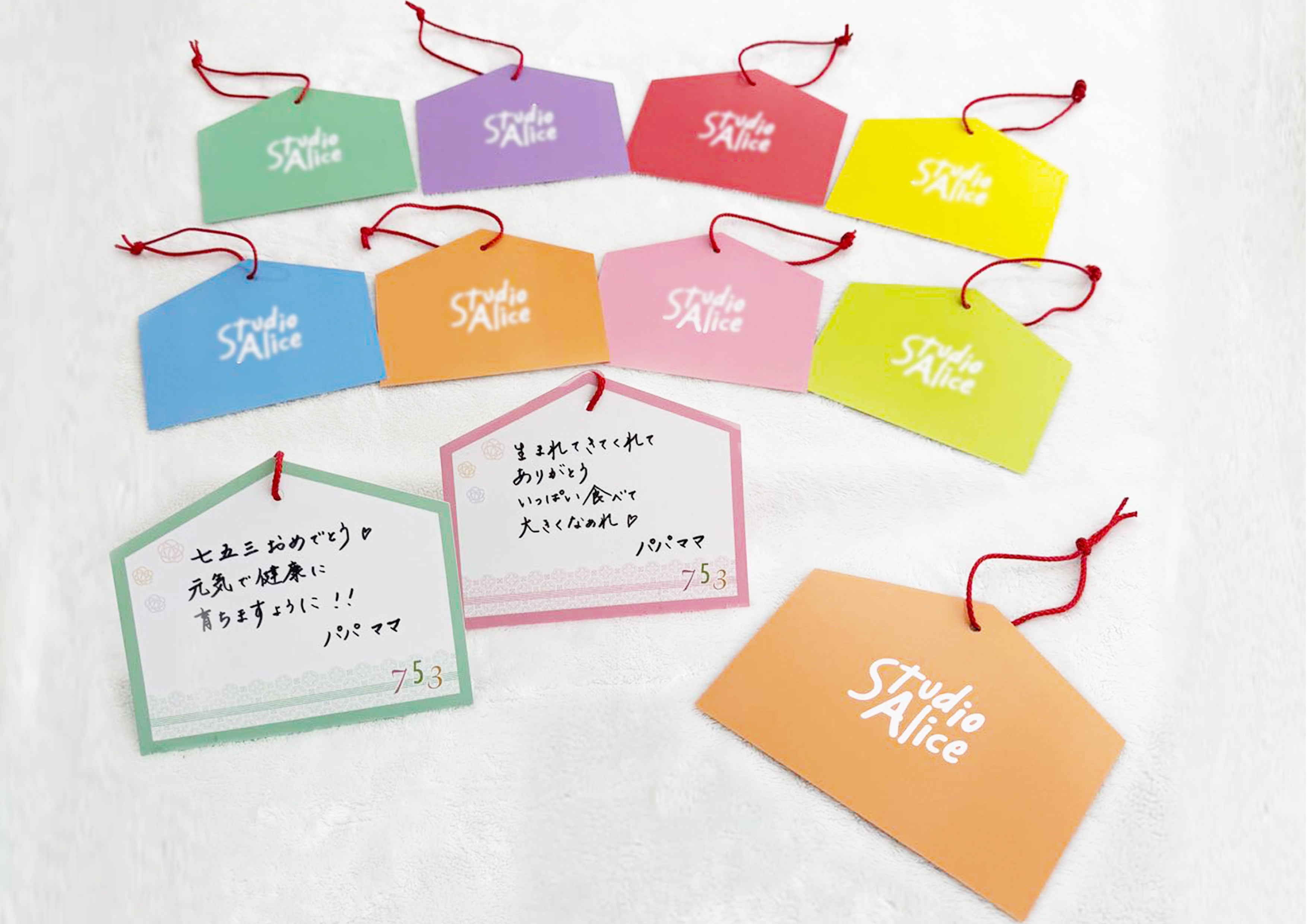 https://prcdn.freetls.fastly.net/release_image/32126/92/32126-92-59e92b3015694ee27e6872a1fa0561f0-3900×3900.jpg ■【Introduced at the Press Event】Studio Alice Recommended Content ■【New Arrival!! 】Colorful Paper Ema Photo Studio Alice recommends the new Shichi-Go-San service, “Colorful Paper Ema Photo.” This original Studio Alice content celebrates Shichi-Go-San with congratulatory messages from parents. Available in eight colors, you can choose your favorite color for your ema. The colorful paper ema will be displayed on “Ema Trees” in stores during the Shichi-Go-San season, and are scheduled to be dedicated at shrines across the country around January 2026.