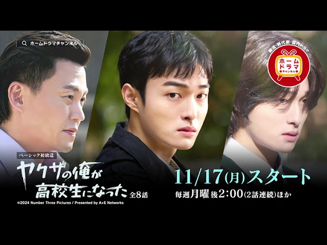 https://prcdn.freetls.fastly.net/release_image/6470/761/6470-761-b0afc36fba46779f66ee754cd3f6179d-1920×1080.jpg (C)2024 Number Three Pictures / Presented by A E Networks I’m a Yakuza and I’m a High School Student A human fantasy about a yakuza who possesses the body of a high school student and his classmates. Lee Seo-jin, known for his versatility in TV dramas like “Lee San” and variety shows like “Three Meals a Day” and “Youn’s Kitchen,” plays Kim Deuk-pal, a gangster who strives to study hard and get into college. Meanwhile, Yoon Chan-young, a popular actor known for his roles in hit shows like “Hyper Knife” and “Our School Now…,” plays high school student Song Yi-heon, whose soul is swapped with Deuk-pal’s after an accident. Golden Child’s Jaehyun plays Choi Se-kyung, a classmate who develops a friendship with Yi-heon. Don’t miss this thrilling drama as Deuk-pal, now living as high school student Yi-heon, explores the relationship between the bullied Yi-heon and those around him, while punishing his abuser!