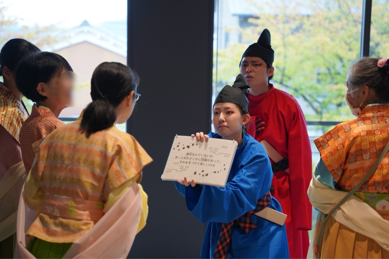 https://prcdn.freetls.fastly.net/release_image/152734/12/152734-12-1a8d9d9cfc9af5c138c124cc66dfd24d-1567×1045.jpg A scene from “Entabi (R)” where the performers are having the participating tourists recite lines. Performance scene of “Heijo Capital Transfer Yoyoki” Photographed in October 2025