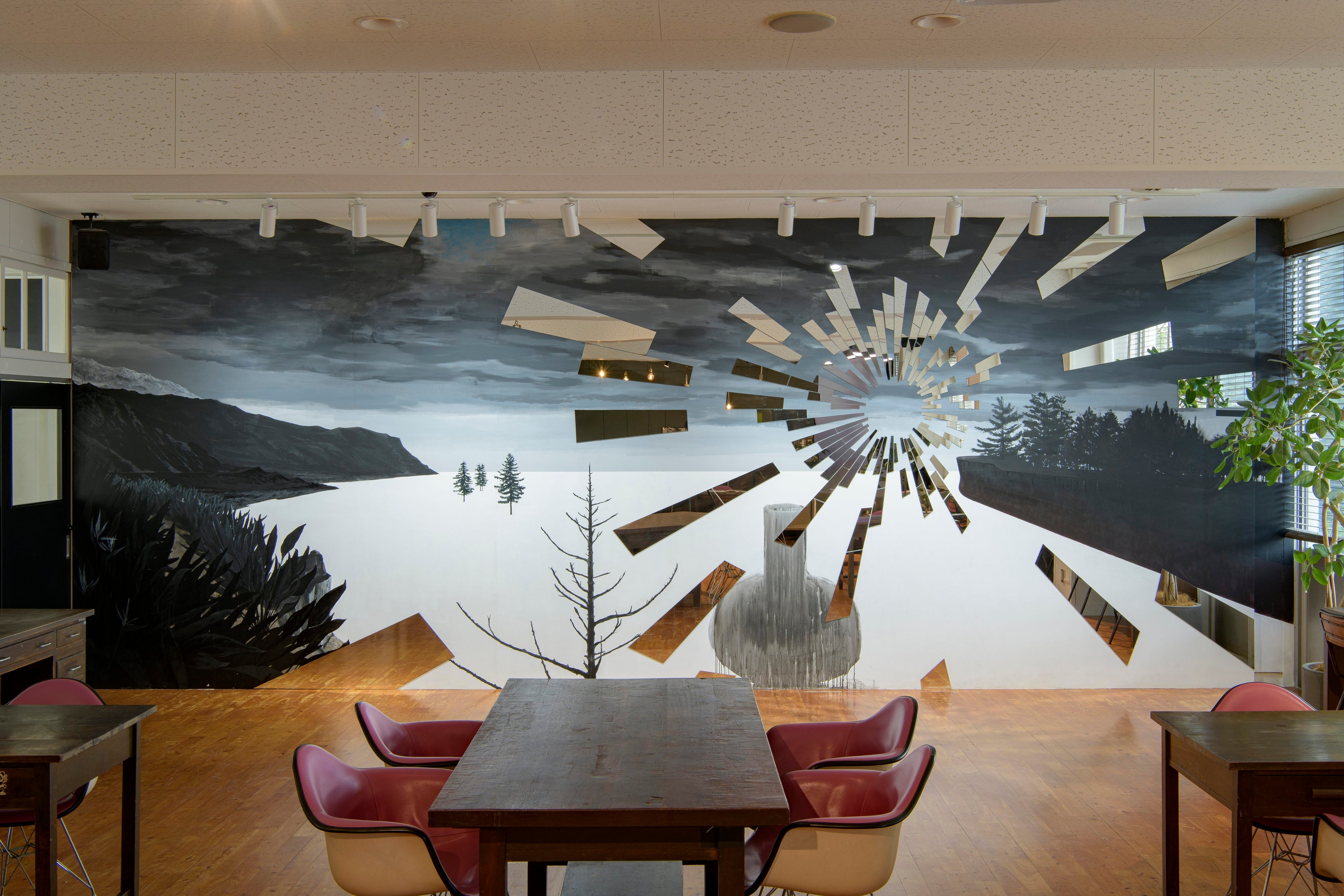 approximately two months of work. This work is on permanent display in the community space of Artist Cafe Fukuoka and is open to the public.