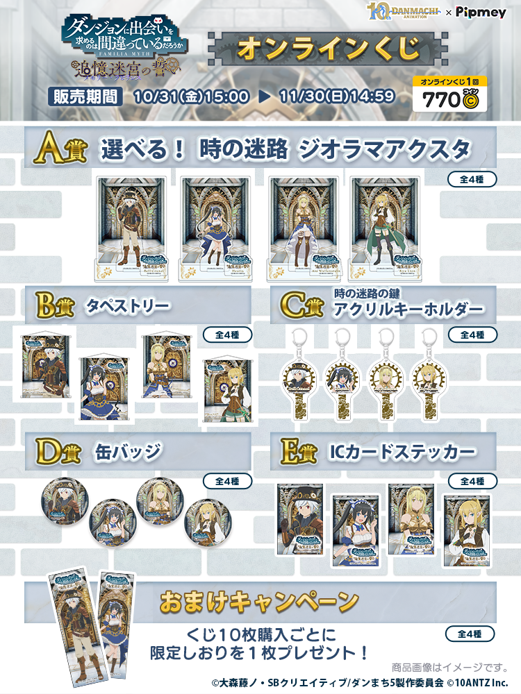 10ANTZ Co., Ltd. Press release: October 31, 2025 To Members of the Press “Pipmey” is hosting a special event to celebrate the 10th anniversary of the “DanMachi” anime! Feature original stories and online lotteries linked to the stories!