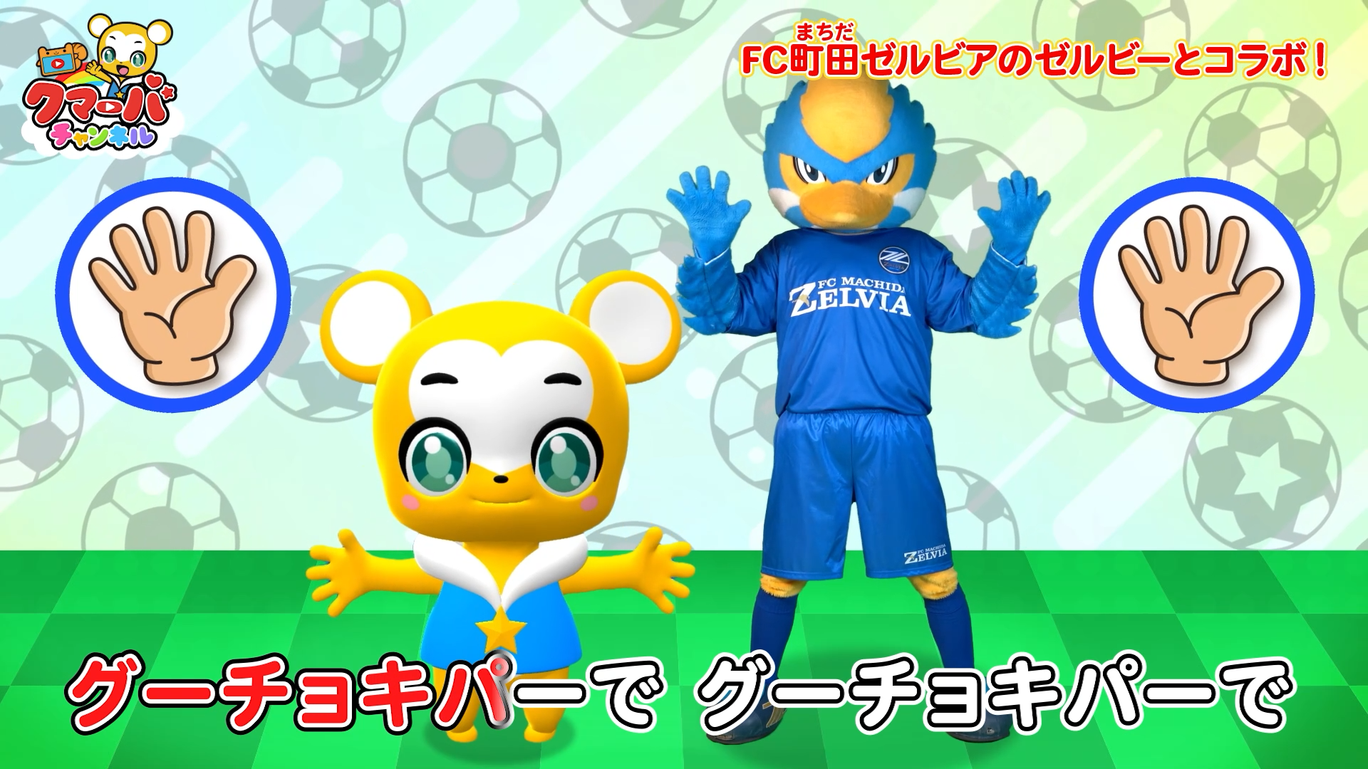 https://www.youtube.com/watch?v=ADfrBMcWDCU ■Collaboration Video Overview In this collaboration video, Kumava and Zelby perform the dance for “What Shall We Make with Rock-Paper-Scissors?” with Machida GION Stadium in the background! This content will be enjoyed not only by fans of both Kumarva and Zelby, but also by children encountering both characters for the first time. In addition, the song is loved by people of all ages, so children and the whole family can enjoy playing hand games together.