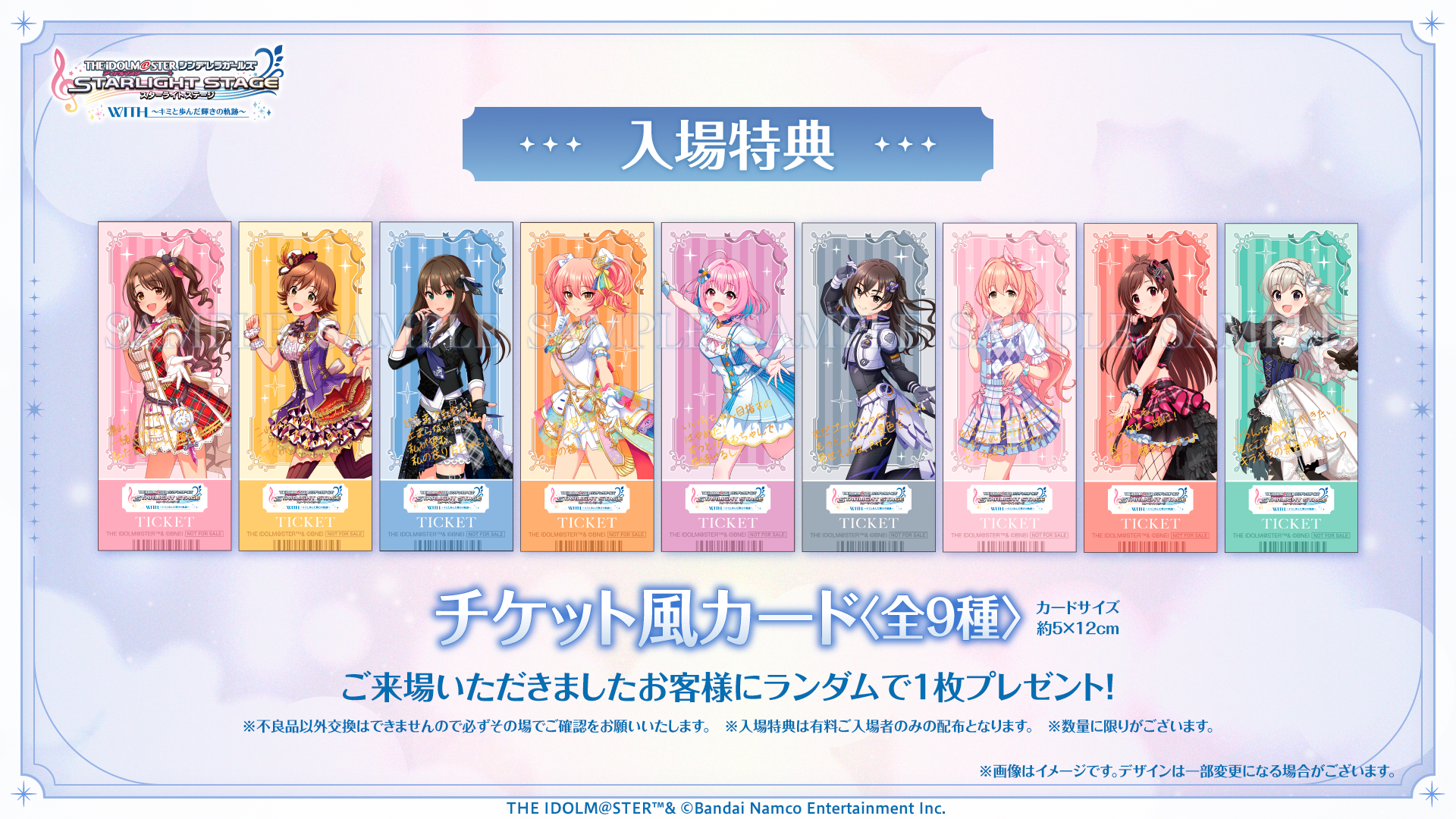 https://eplus.jp/imascg-ss-with/ 【Advance Tickets】General Sales (First Come, First Served) Period: November 1st (Sat) 10:00 AM – December 12th (Fri) 11:59 PM Date/Time Specified Tickets (December 13, 2025 – December 14, 2025): ¥2,800 (tax included) Specified Period Tickets (December 15, 2025 – January 4, 2026): ¥2,800 (tax included) *This exhibition will be closed during the New Year’s holiday period [December 31st (Wednesday) – January 3rd (Saturday)]. [Same-day tickets] Tickets will be sold at the event space counter on the 8th floor of Yurakucho Marui. 3,000 yen (tax included) *Same-day tickets for specified dates will be sold at the venue on a first-come, first-served basis only if there are any advance tickets remaining. Also, because there is a limited number of tickets available, sales will end once they are sold out. ■Limited Merchandise: Ticket Holder (with ticket-style card) Exchange Ticket: 1,500 yen (tax included) [Size] Card case: approx. 7 x 15cm, Neck strap: approx. 2 x 95cm, Foil-stamped ticket-style card: approx. 5 x 12cm