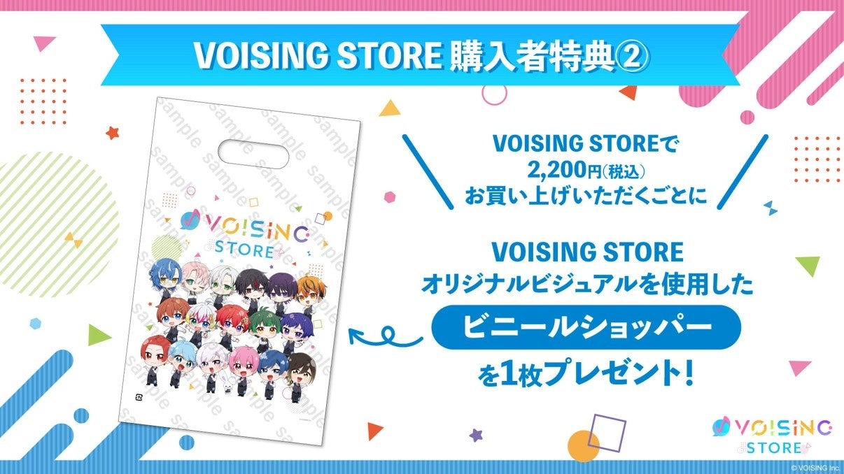 https://prcdn.freetls.fastly.net/release_image/115076/78/115076-78-7c5d4eddddb5e499ad550dce5b6807a2-1267×712.jpg *Limited quantity, while supplies last. *Limit one per transaction. 2. Original Vinyl Shopper For every purchase of 2,200 yen (tax included) at “VOISING STORE in UMEDA,” you will receive a vinyl shopper featuring original “VOISING STORE” artwork.