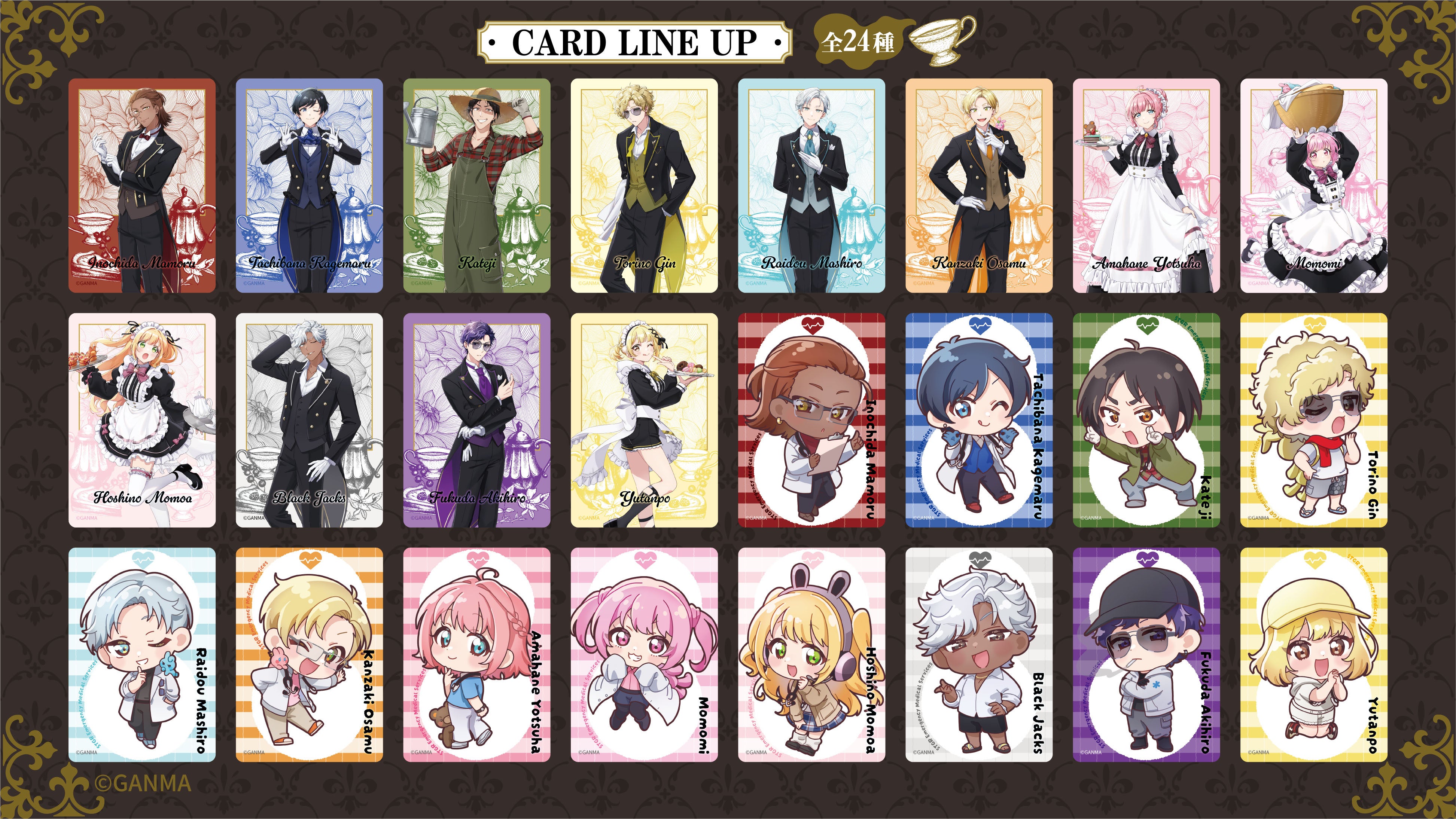 https://prcdn.freetls.fastly.net/release_image/138402/10/138402-10-a39d29d253ad024a68277839fc1d806e-3890×2189.jpg ■Street Grass Ambulance Team Trading Card Wafers – Butler & Maid Edition – Manufacturer’s suggested retail price: ¥290 (tax included) – Card types: 24 types (normal) 24 types (holographic) *Randomly included – Card size: Approximately 59 x 86 mm – Contents: 1 vanilla-flavored wafer, 1 trading card – Participating members: Momomi, Torino Gin, Raido Mashiro, Kanzaki Osamu, Amano Yotsuba, Tachibana Kagemaru, Hoshino Momoa, Inochida Mamoru, Kateiji, Black Jacks, Yutanpo, Fukuda Akihiro Notes: *Images are for illustrative purposes only. Actual product may differ. *Each pack contains one of 24 cards with random holographic illustrations. *Not all types are included in one box. *Card designs cannot be selected. If you purchase multiple cards, you may receive the same card. *Store at room temperature, avoiding direct sunlight, high temperatures and humidity. *This product is manufactured in a factory that also produces products containing eggs. *Once opened, please consume as soon as possible regardless of the expiration date. *Please note that these sweets are fragile and may crack or chip. *There may be color unevenness on the surface of the wafer, but this is due to uneven baking during manufacturing and does not affect the quality. *Product release dates and specifications may be changed, postponed, or canceled due to various circumstances. ●Bonus information