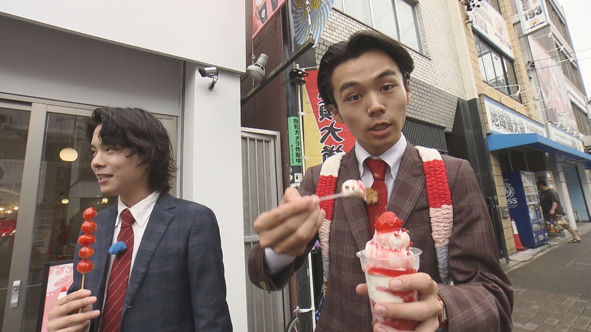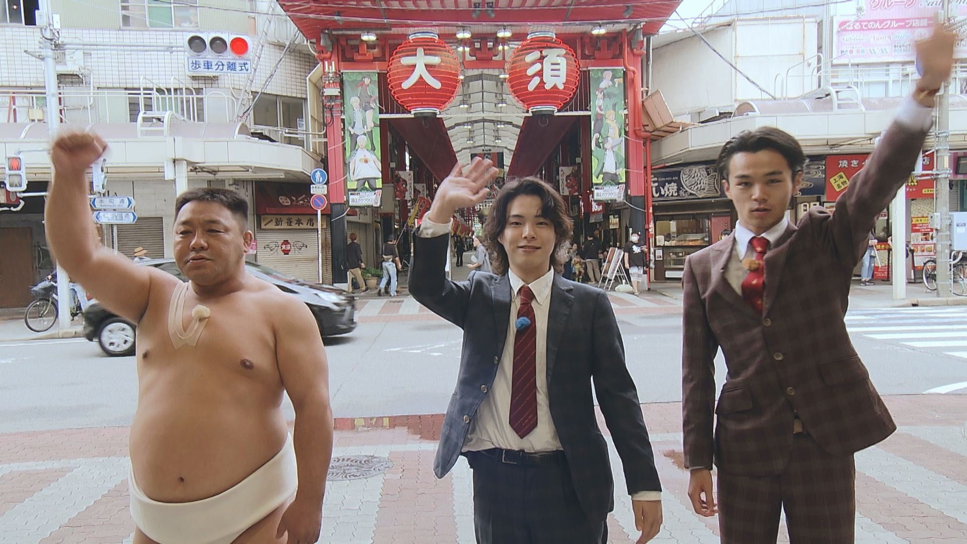 [TV Aichi Corporation] A new and exciting program that combines trash collection and gourmet food! Sumo wrestler Akatsu and Nagoya comedian Nikorashika collect trash in Osu, the foodie town, and ask about local gourmet recommendations.   Image