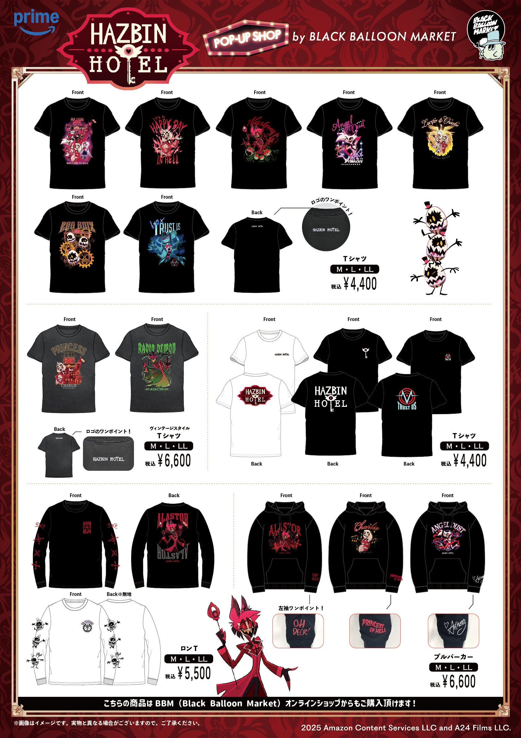 https://prcdn.freetls.fastly.net/release_image/80478/50/80478-50-99e89d99bcc048979288fd5bc4b798ae-1684×2384.jpg Kaitac Family Co., Ltd. (Headquarters: Okayama City, Okayama Prefecture / President and CEO: Masakazu Akagi) will begin selling “Hazbin Hotel” apparel and miscellaneous goods on the online shopping site “Black Balloon Market.” ■■POP-UP SHOP event information■■ [Shinjuku Marui Annex] Event Period: Saturday, November 8, 2025 – Monday, November 24, 2025 (National Holiday) Venue: Shinjuku Marui Annex, 6th Floor, Calendarium 6 Business Hours: Weekdays 11:00-19:00 Saturdays, Sundays, and Holidays 10:30-19:00 [Kobe Marui] Event Period: Friday, December 5th, 2025 – Sunday, December 14th, 2025 Venue: Calendarium, 4th floor Business hours: Weekdays and Saturdays 11:00-19:00 / Sundays and holidays 10:30-19:00 *These hours may differ from the facility’s business hours. ■■How to Enter■■ We had planned to offer free admission, but due to the large number of customers expected, admission will be by advance reservation (first come, first served) during certain hours on Saturday, November 8th. For