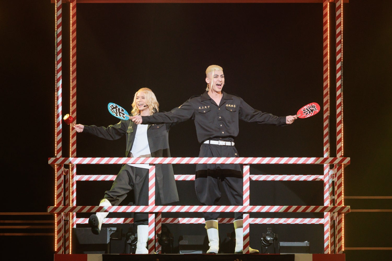 https://prcdn.freetls.fastly.net/release_image/51825/688/51825-688-d0b689f51d3cd36e1662c04e79a7a259-1500×1000.jpg Appearing to the sound of heroic drumming was Takemichi Hanagaki (Ryohei Takenaka), now the captain of Tokyo Manji Gang’s First Division. When Takemichi called out, “Boss!”, Manjiro Sano (Ryo Kitamura), also known as Mikey, appeared. He stood at the top of the tower and declared the start of the concert, “Is anyone afraid to get excited with us? There aren’t any, right? Let’s go!” This marked the start of the approximately 1 hour and 50 minute non-stop live performance.