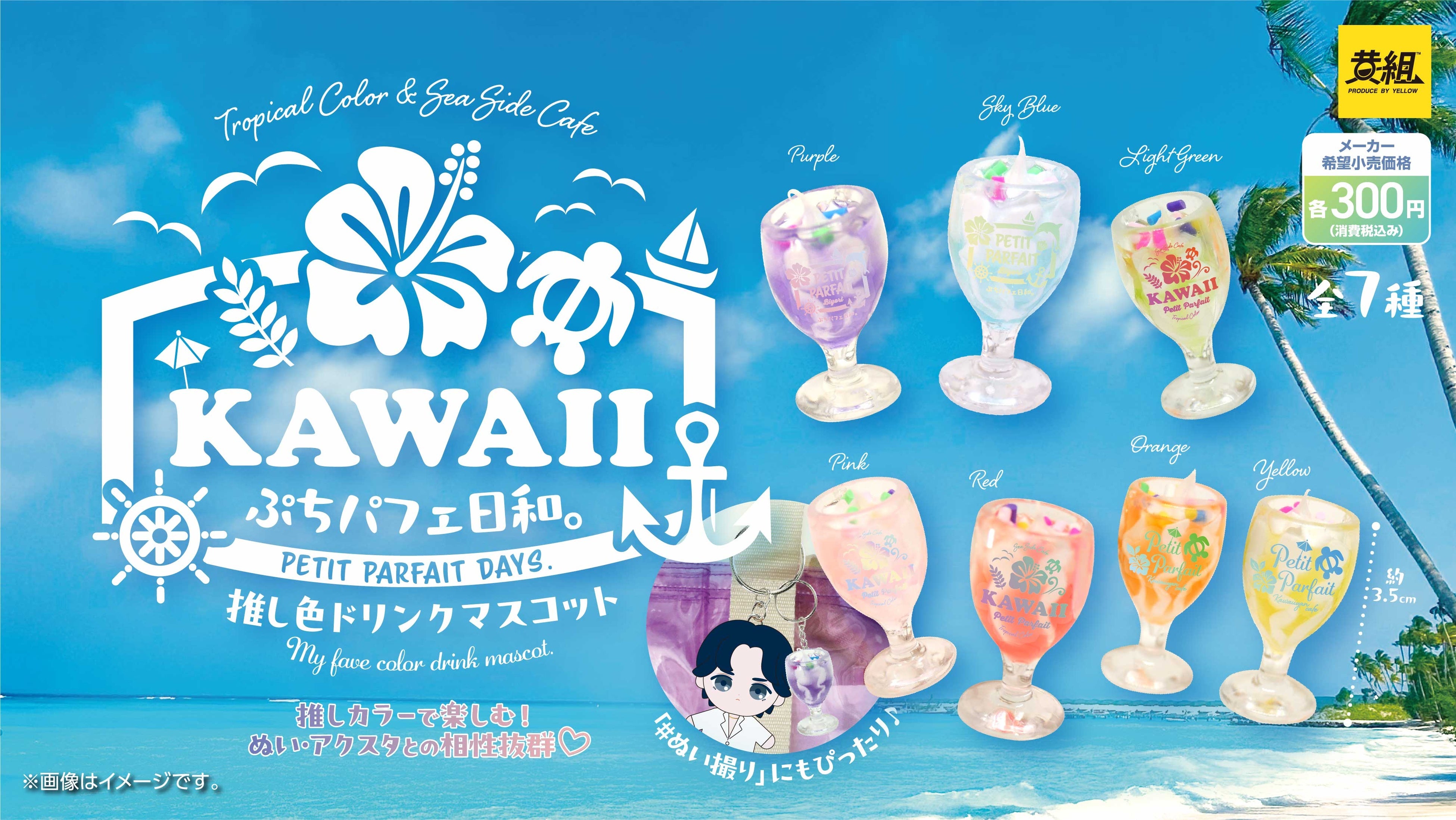 https://prcdn.freetls.fastly.net/release_image/56550/786/56550-786-f2680b9a549f5b05003f2f4dc72879e9-327×297.png Product overview Name Perfect day for a mini parfait. Favorite Color Drink Mascot Type Capsule Toy Price 300 yen (7 types in total), tax included *The date when products become available in stores may vary by store. *The image may differ slightly from the actual product. *The information listed is current as of the time of page publication. It is subject to change without notice.