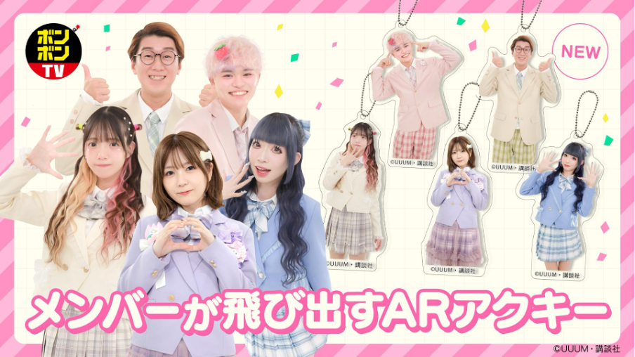 https://prcdn.freetls.fastly.net/release_image/8567/790/8567-790-645187414f81b1e14aace8b52d331acf-904×508.png “Bonbon TV AR Hide and Seek” Overview • Event Name:Bonbon TV AR Hide and Seek • Period:Sunday, November 2, 2025 – Saturday, January 31, 2026 • Venue: Oku Matsushima Clubhouse (15-1 Kitayokei, Nobiru, Higashi Matsushima City, Miyagi Prefecture) • How to Experience: Purchase and bring a “Pop-Up! AR Acrylic Keychain” (5 types available, 1,380 yen including tax) at the facility or the “Creator Store” (UUUM’s official online store) to experience the experience. • Notes: This experience is available only during facility opening hours. It uses WebAR technology, which does not require an app download. Limited edition merchandise will be available for purchase, and there will also be photo spots within the facility! About the “Pop-Up! AR Acrylic Keychain” This is a new and exciting product. When you hold the keychain over your smartphone and the camera recognizes it, the members of Bonbon TV will pop out in AR. • Product price: 1,380 yen (tax included) • Types: 5 types in total (Yocchi, Domi-chan, Mimi, Yume-chan, Seorin) • Sales Location: Available at the Oku Matsushima Clubhouse and Creator Store (UUUM official e-commerce store). Don’t miss this opportunity to check it out! Creator Store (UUUM official EC store):https://creator-store.jp/collections/28077-6135