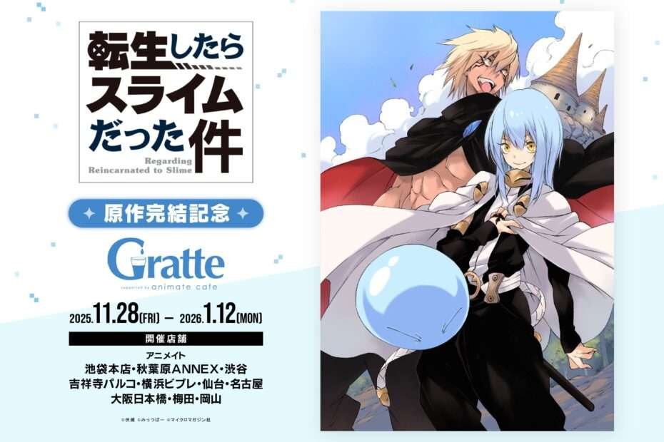 It’s almost too good to eat! To celebrate the completion of “That Time I Got Reincarnated as a Slime,” a collaboration project with Animate Cafe Gratte will be held from November 28, 2025!2025-10-242025-10-24All