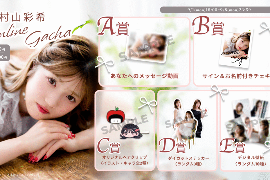 ANYLAND Co., Ltd. Held from September 1st to September 8th Murayama Ayaka online gacha will be on sale!2025-08-292025-08-29All
