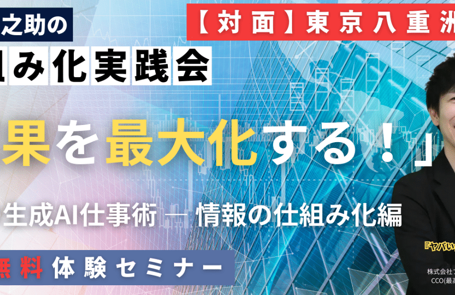 Systemization expert Konosuke Matsuda will be holding his first face-to-face special seminar in Tokyo on Tuesday, November 4th, titled “Maximizing Results! CEO’s AI-Generated Work Techniques: Systemizing Information.”2025-10-242025-10-24All
